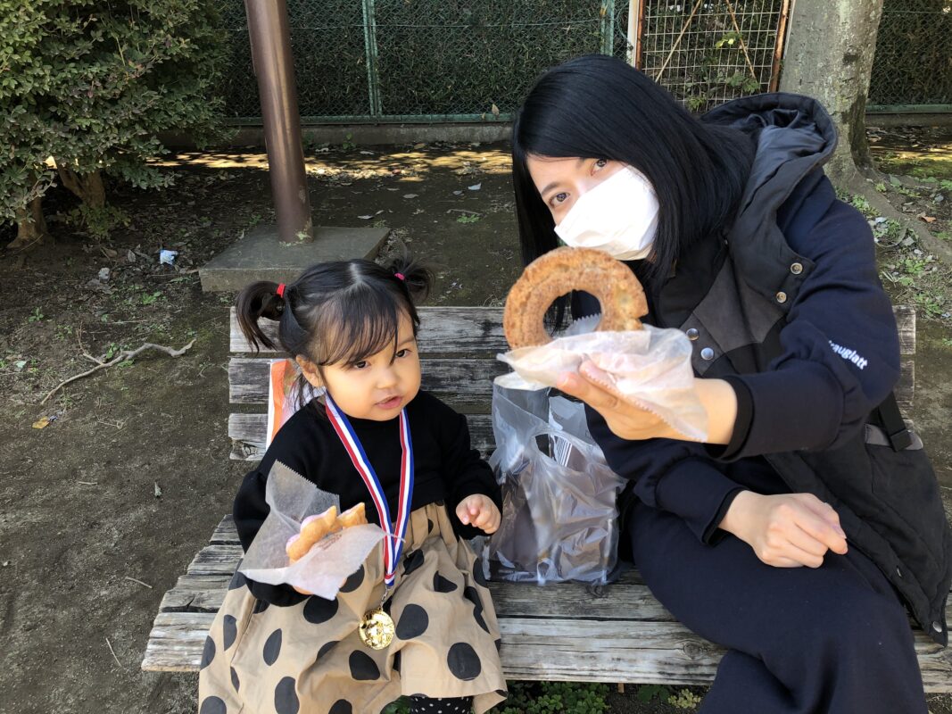 娘が金メダルを獲ったのでご褒美にドーナツを。そしてちゃっかり自分も食べてます!